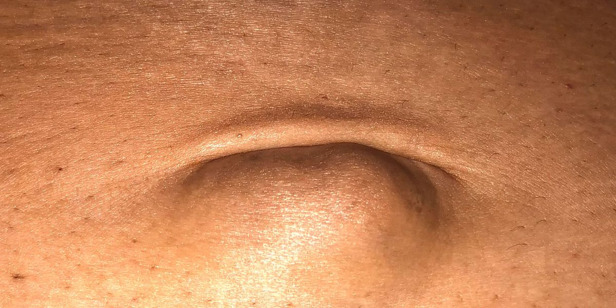 Es una protuberancia o bola que se localiza en el ombligo, se produce por obesidad, tosedores crónicos , después de esfuerzos físicos ( ejercicio o levantar cosas pesadas ) o embarazo. ( se manifiesta como una bolita en el ombligo en las mujeres embarazadas. Se manifiesta por dolor en el ombligo o en el abdomen dependiendo lo que esté atorado, náusea, vómito o la persona no puede evacuar o canalizar gases.