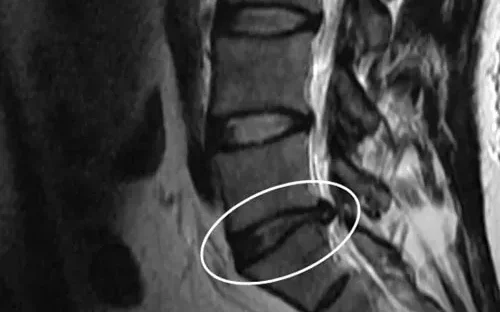 Una hernia discal – también llamado disco herniado, disco desprendido o disco roto – ocurre cuando una presión de la vértebra superior o inferior fuerza a parte o todo el núcleo pulposo a pasar por el annulus que está débil o parcialmente roto. El núcleo pulposo herniado puede oprimir los nervios cercanos al disco, causando mucho dolor.