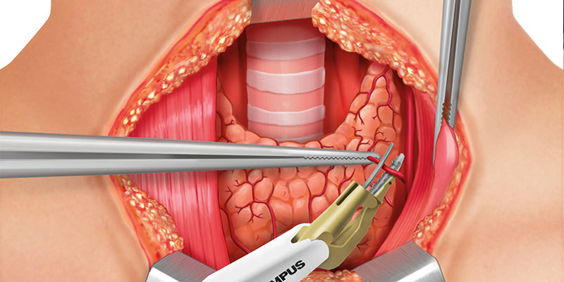 Mediante una incisión en el cuello se retira el órgano enfermo, puede ser la Tiroides en su totalidad, la mitad de la tiroides o la glándula paratiroides. Dependiendo del Diagnóstico. (Cáncer, nódulo o adenoma).